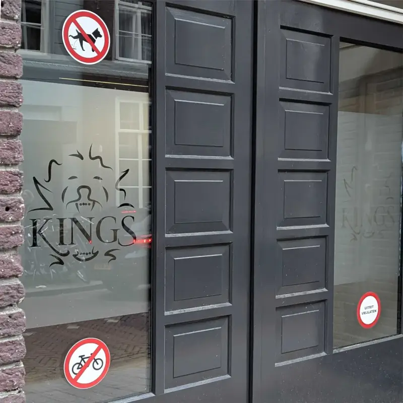 "Hier geen fietsen of steps plaatsen": Voorkom blokkades bij nooduitgangen, etalages of smalle doorgangen. Deze opvallende stickers laten niets aan de verbeelding over.