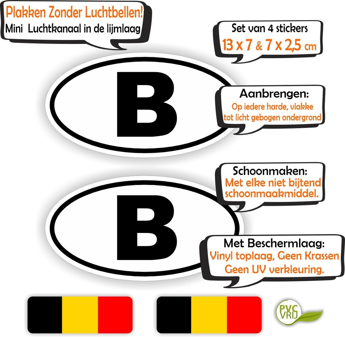 Laat zien dat je trots bent op België met deze B-auto-stickerset van Jerma. Perfect voor op je auto, caravan, camper of motor.