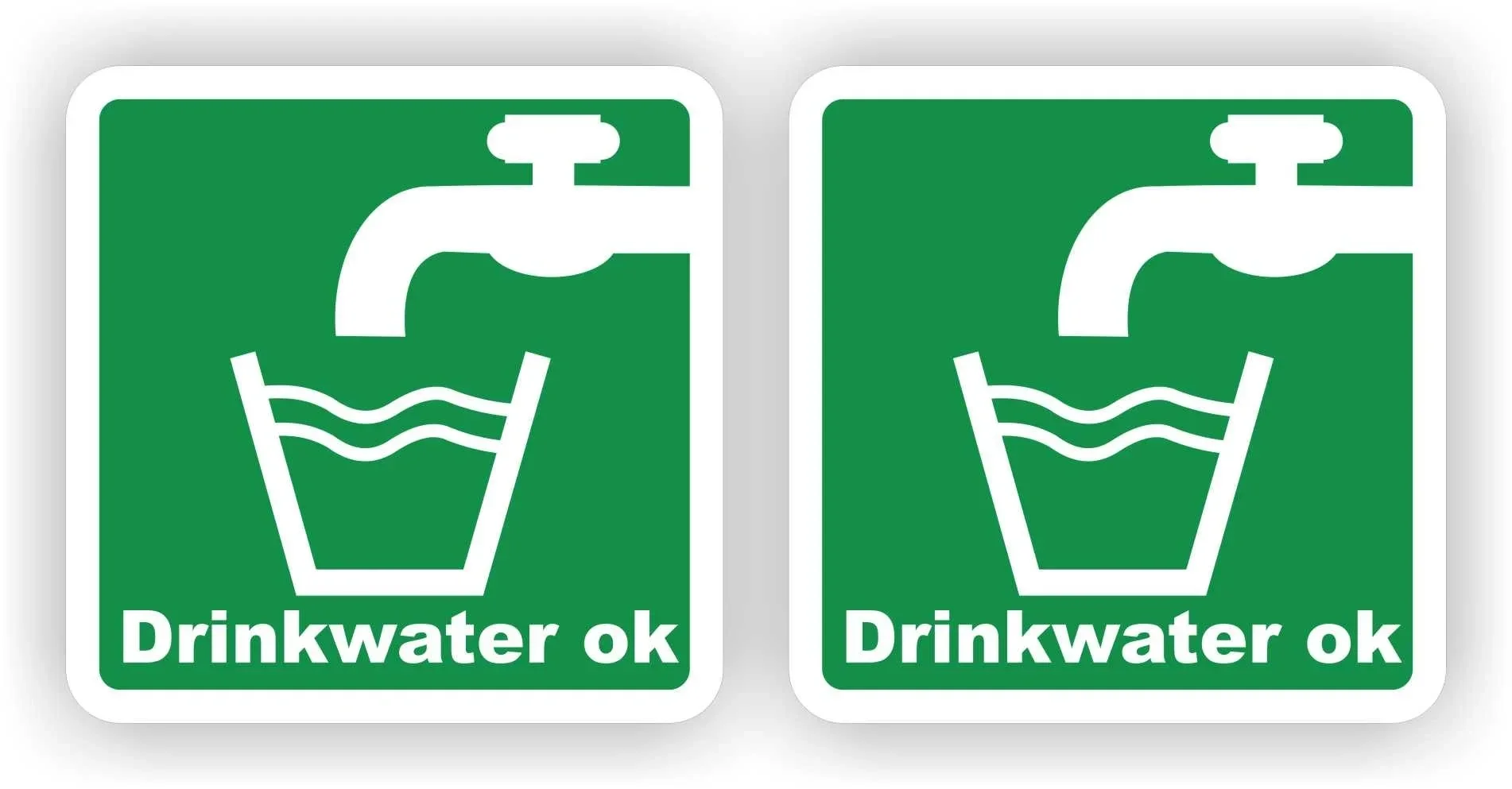 Deze set bestaat uit twee stickers van 14 x 14 cm. De stickers zijn voorzien van het duidelijke symbool van een glas water en de tekst "Drinkwater oké". Dit maakt het voor iedereen duidelijk dat er drinkwater beschikbaar is.