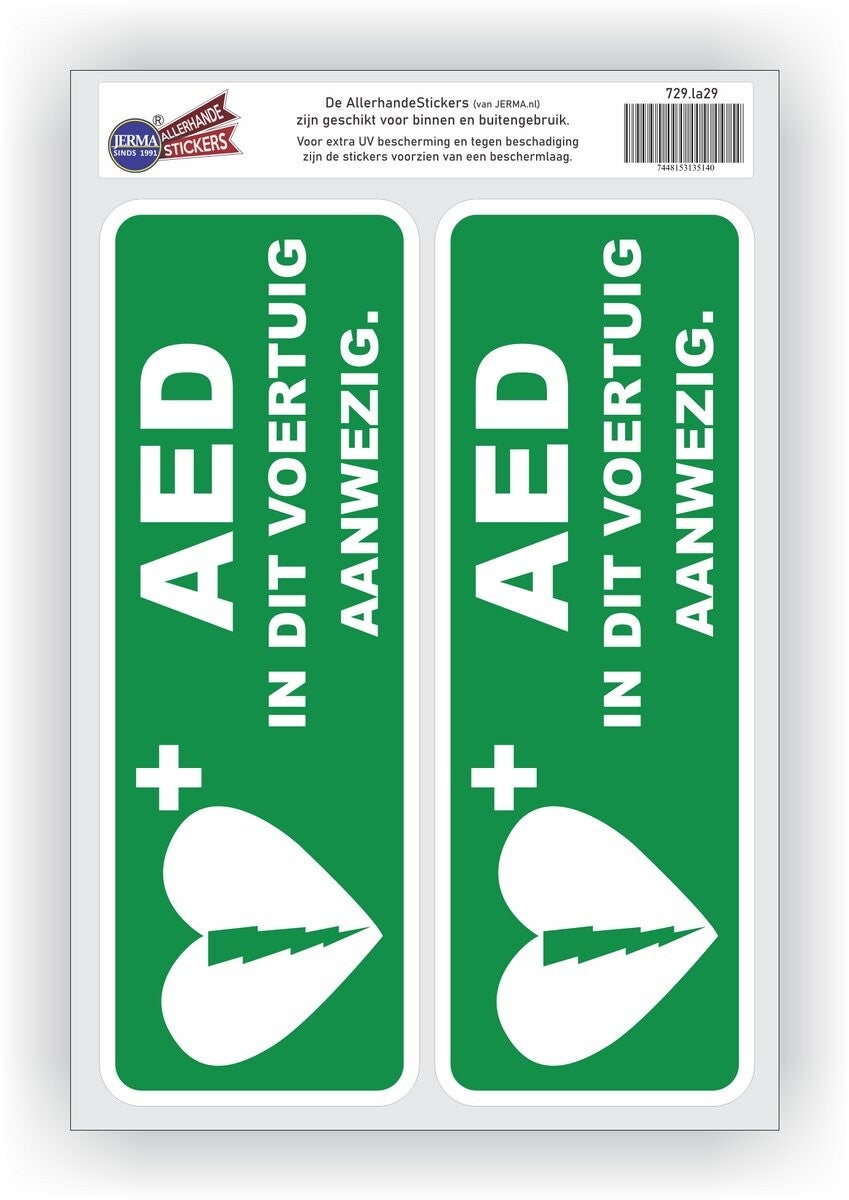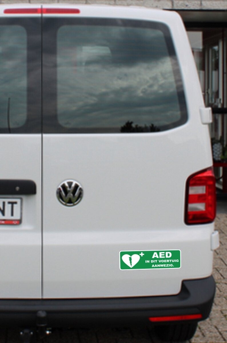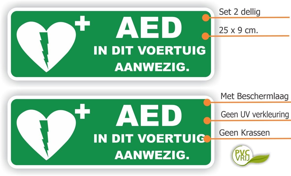 AED-sticker in dit voertuig aanwezig, set van 2 stickers.