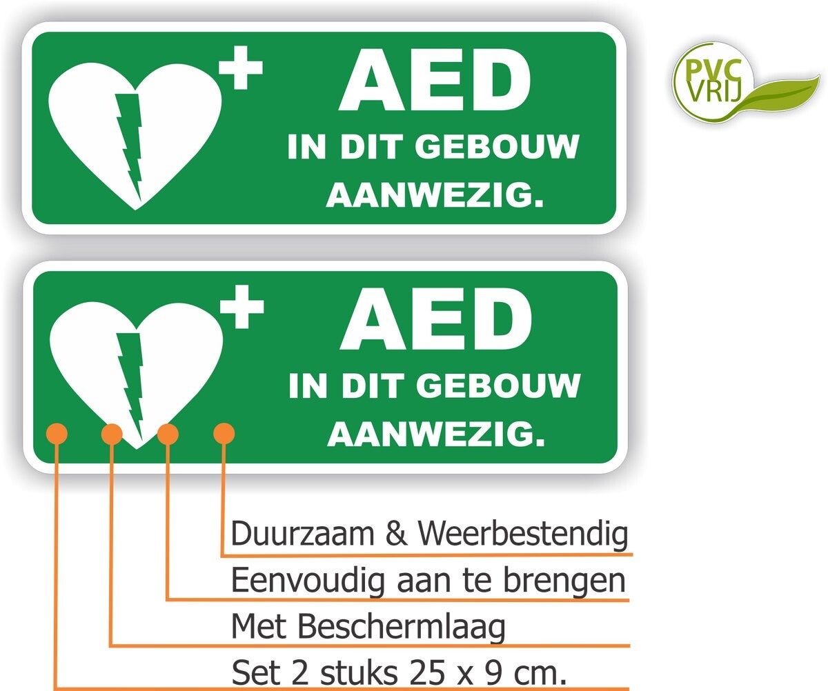AED in dit gebouw aanwezig, stickerset van 2 stuks
