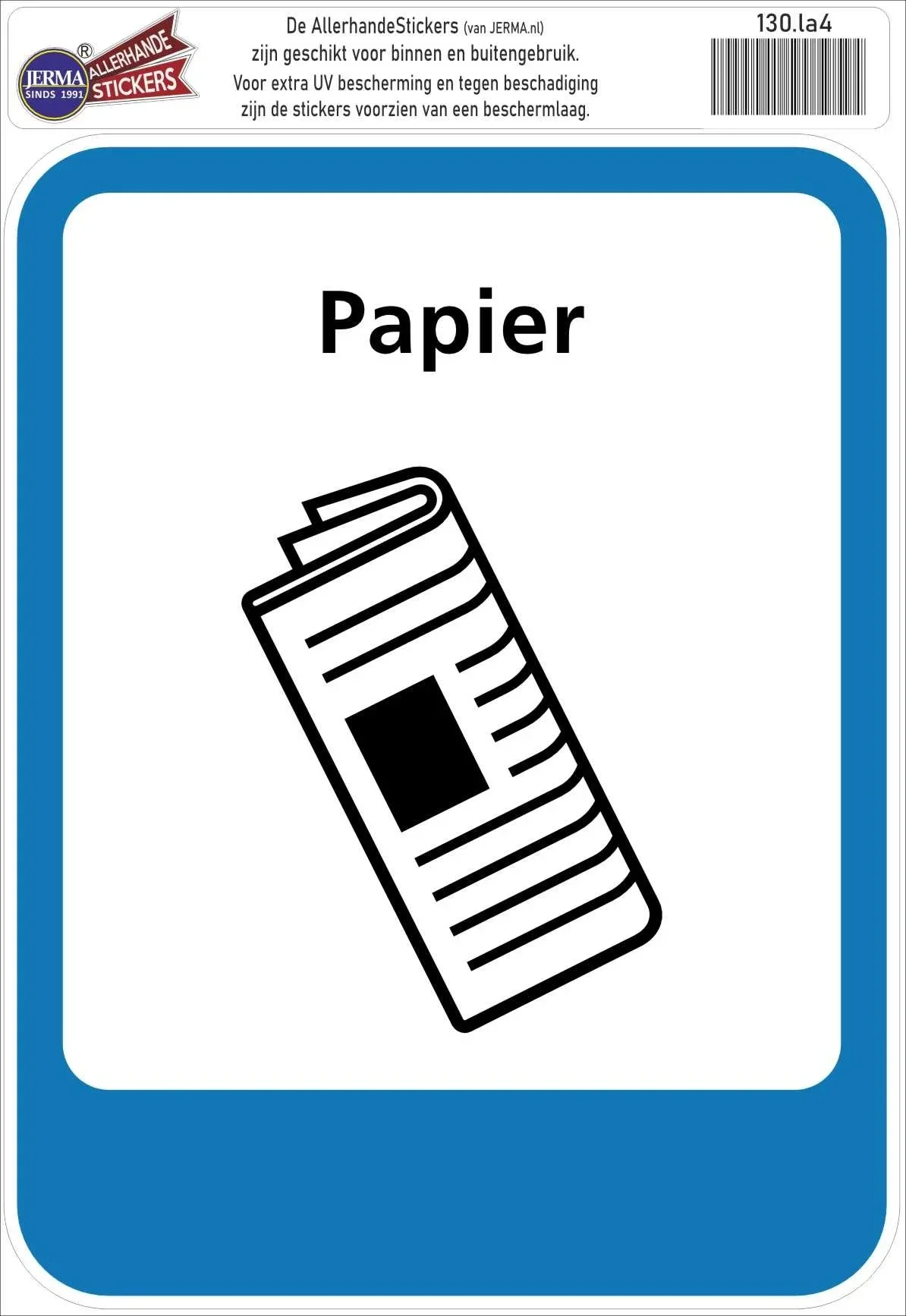 - Voorzien van pictogram voor papier restenafval