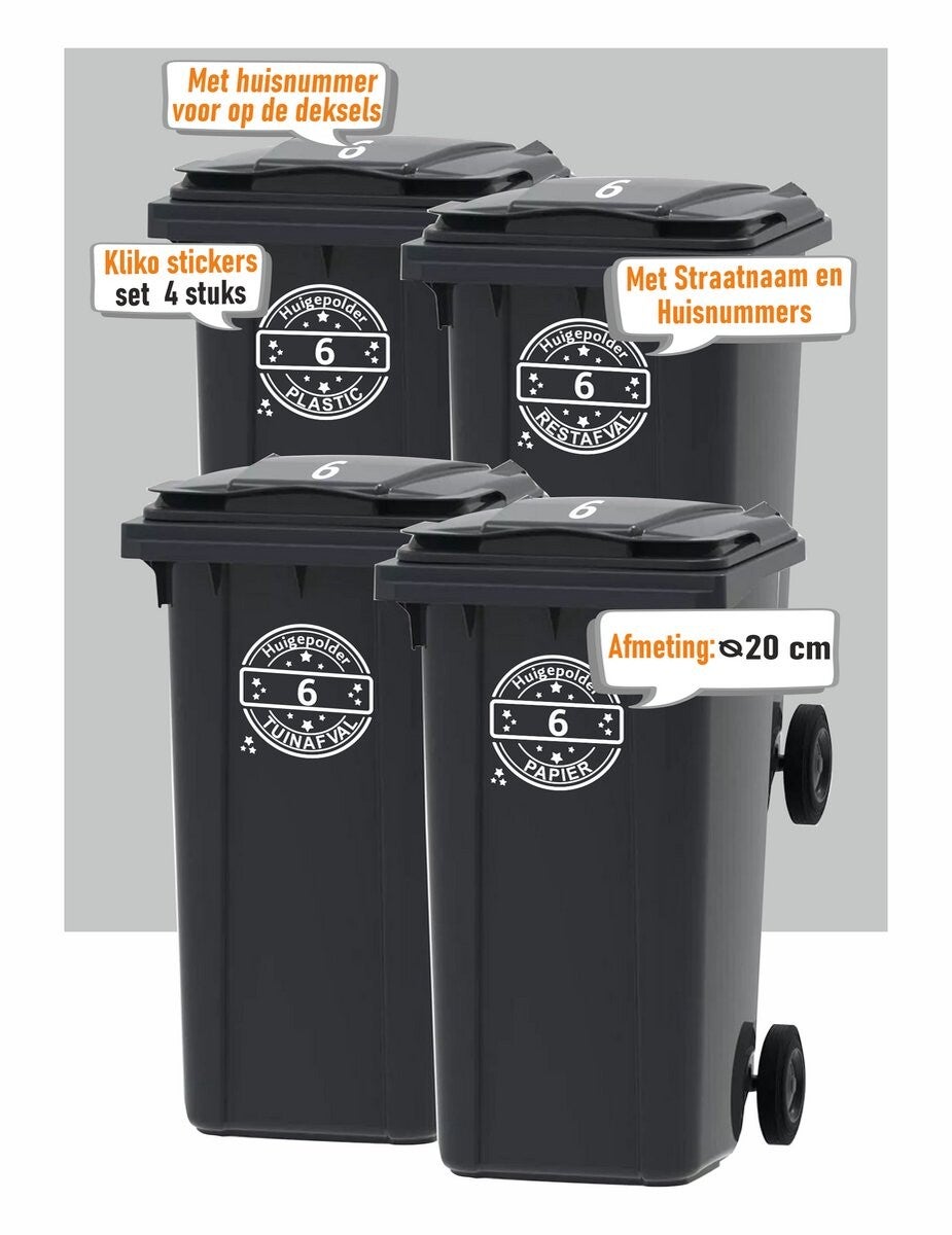 Is het jou ook al eens overkomen dat je kliko per ongeluk is meegenomen door de buren? Met onze unieke kliko-stickers is dat verleden tijd! Onze stickers maken je afvalcontainer direct herkenbaar, zowel voor jezelf als voor de afvalinzamelaars.