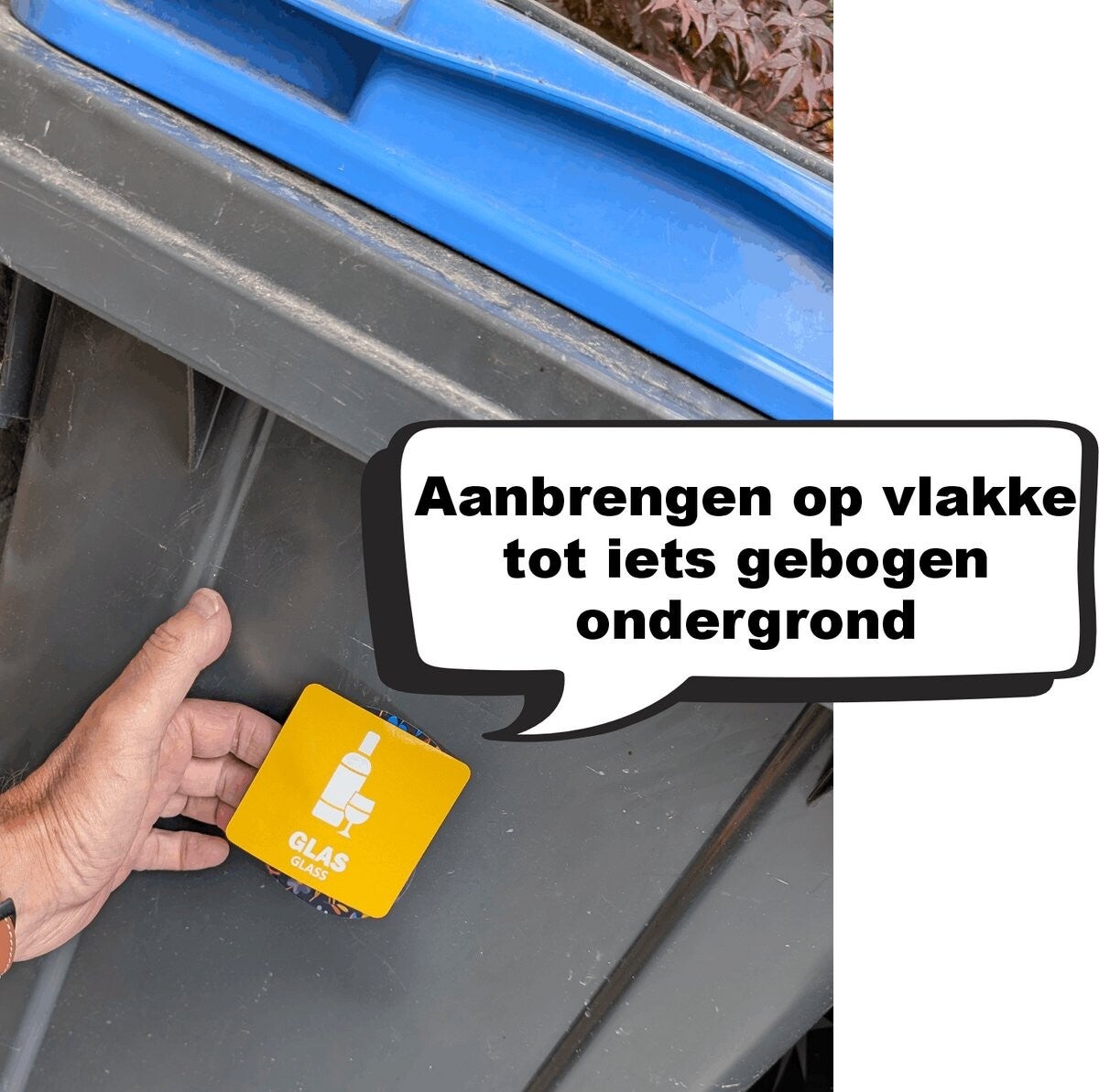 Kan op elk hard en vlak tot iets gebogen oppervlak worden gebruikt, zodat je de stickers op je afvalbakken, prullenbakken of containers kunt plakken.