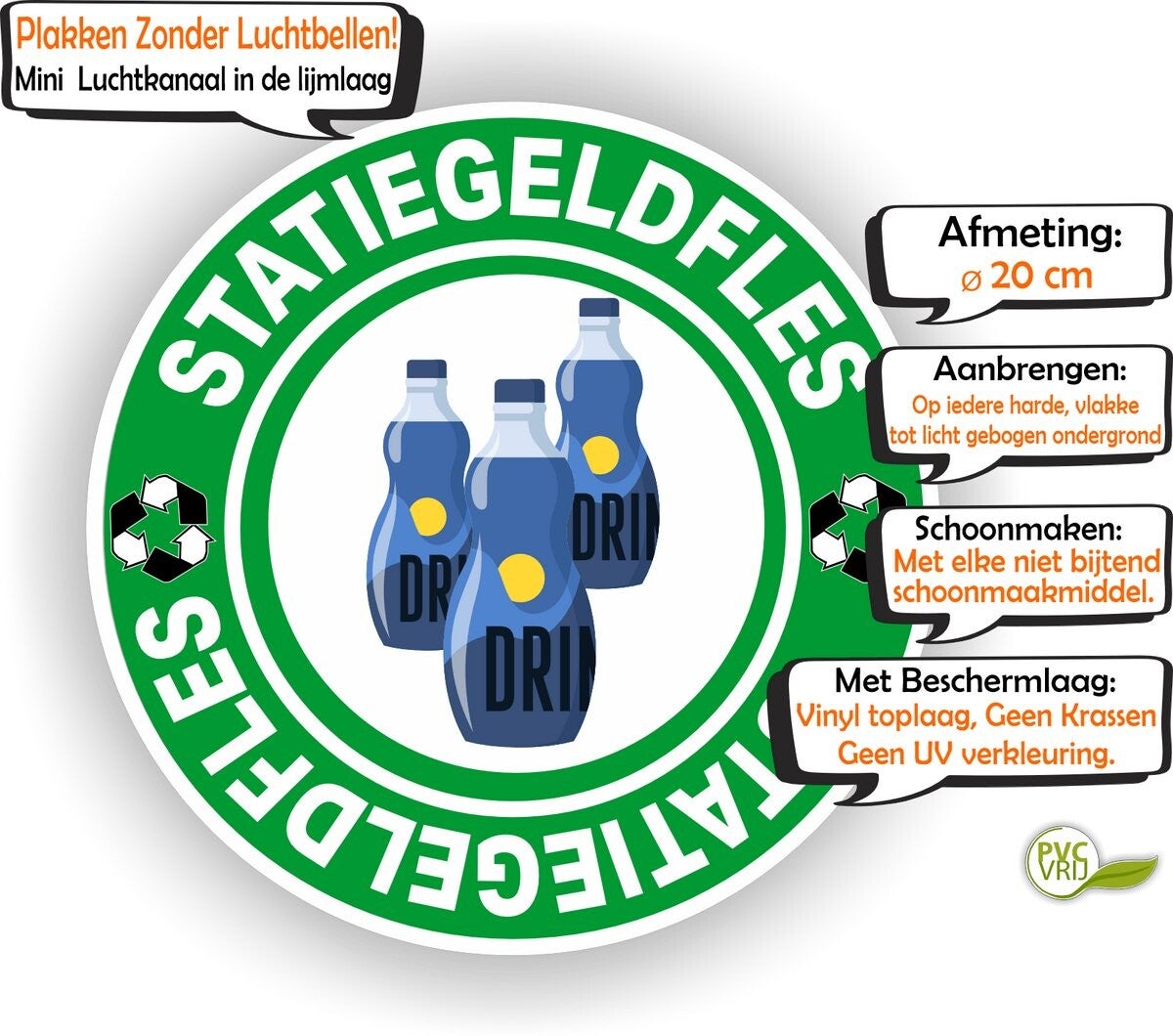 Wilt u uw klanten of bezoekers laten weten waar ze lege statiegeldblikjes kunnen inleveren? Dan is deze sticker de perfecte oplossing. De sticker is groot en duidelijk, met een herkenbaar symbool en de tekst "Statiegeldflesjes hier inleveren".