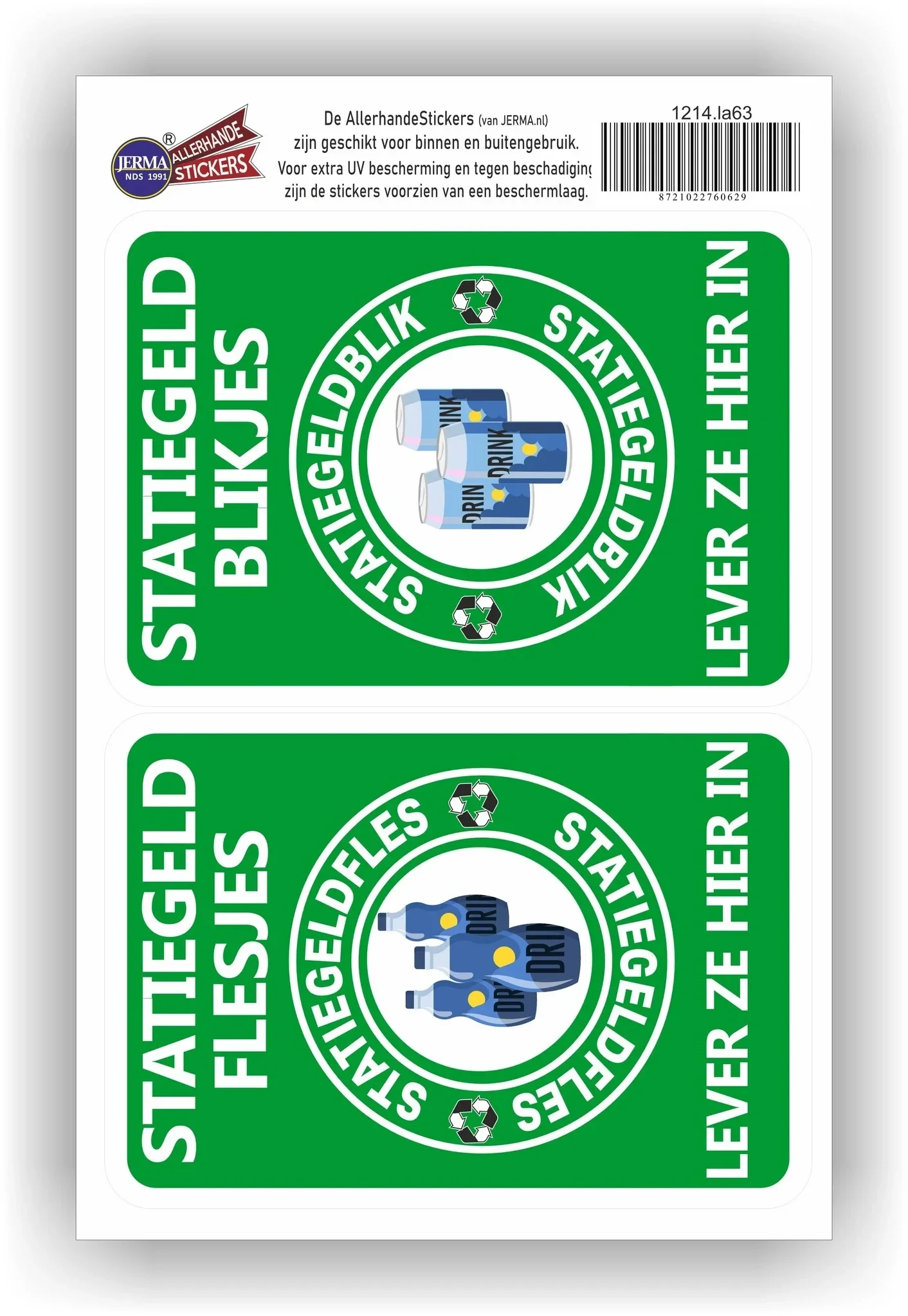 Statiegeld fles en blik inleveren set van 2 stickers (1208.la63)