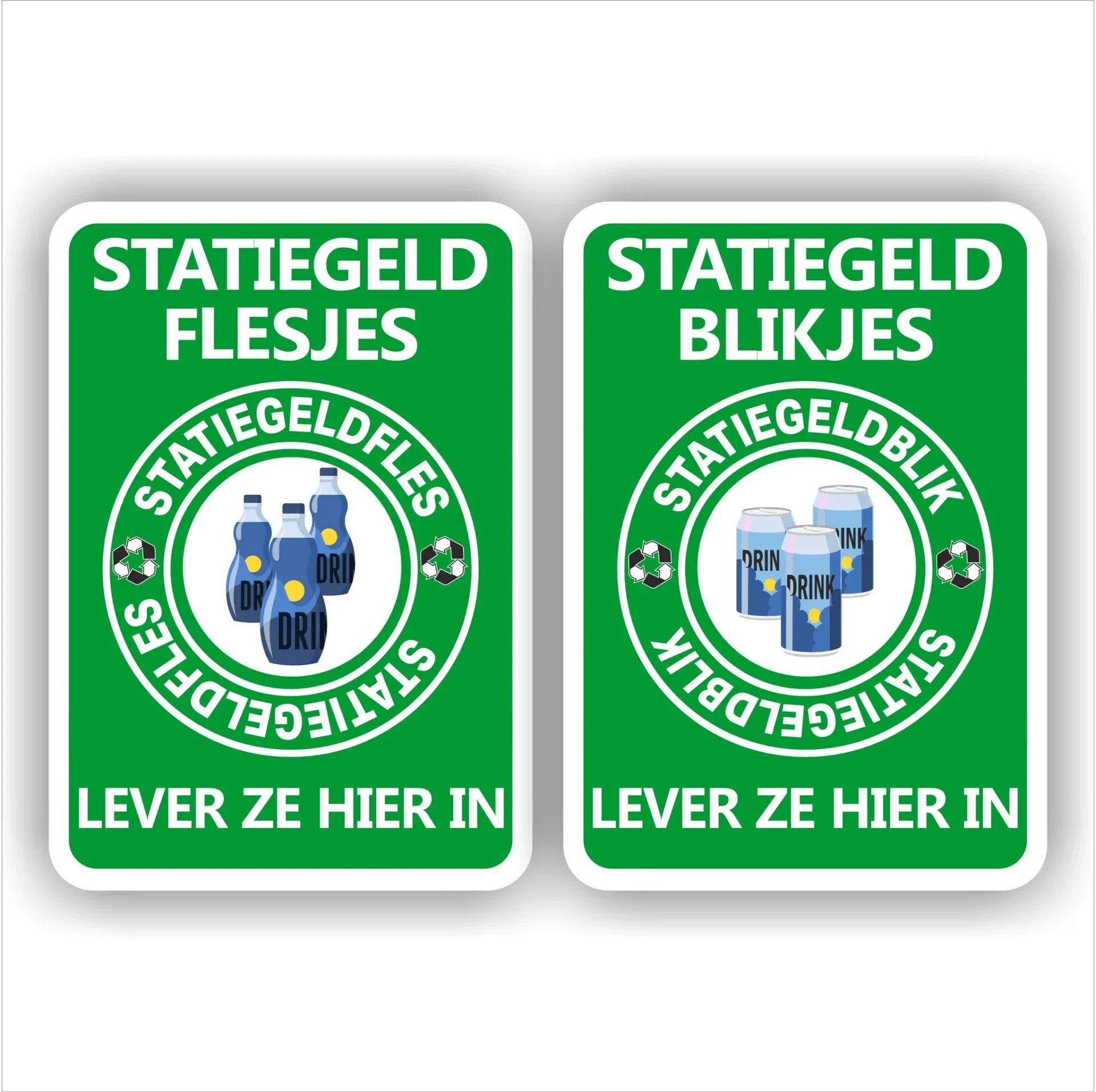 Sticker set van 2 stuks: Statiegeld blikjes hier inleveren sticker en de sticker Statiegeld flesjes hier inleveren sticker