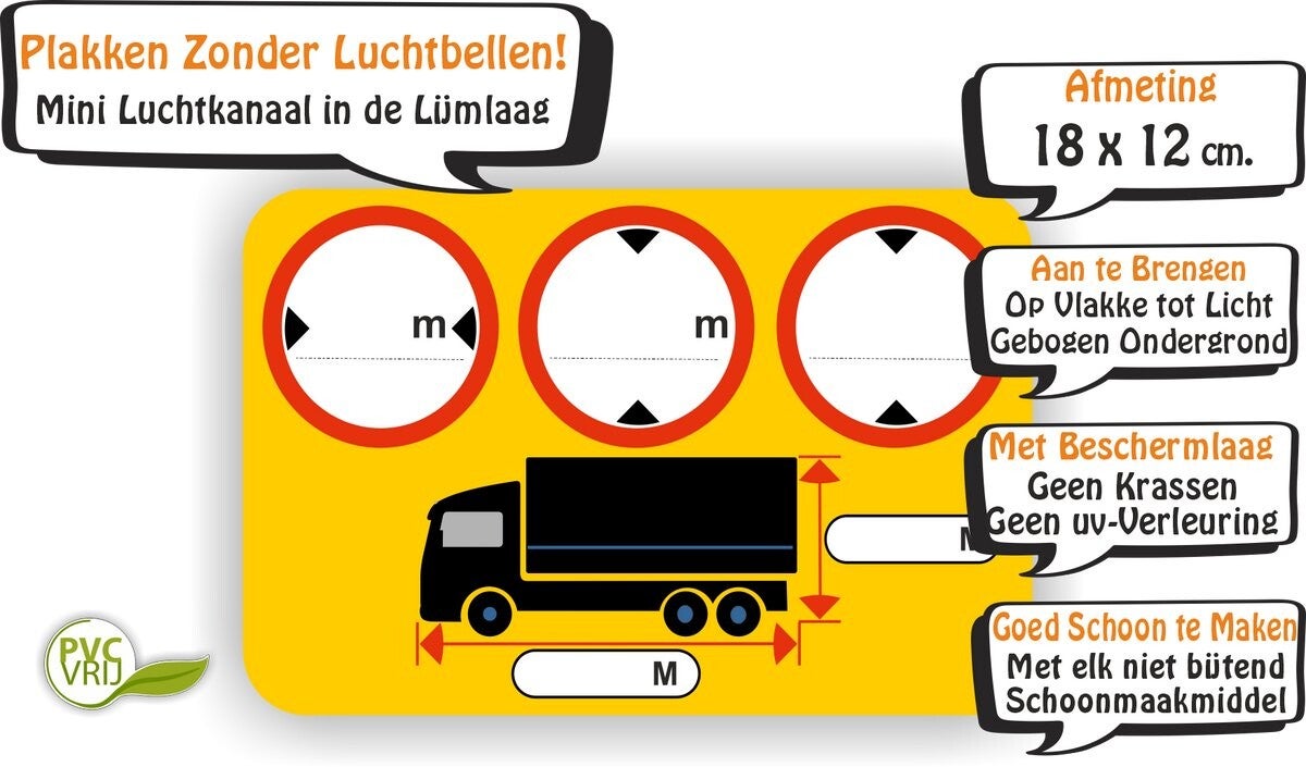 Met deze sticker heb je altijd de afmetingen bij de hand. Beschrijf de sticker eenvoudig met een watervaste stift en voorkom zo problemen tijdens het parkeren of transport.