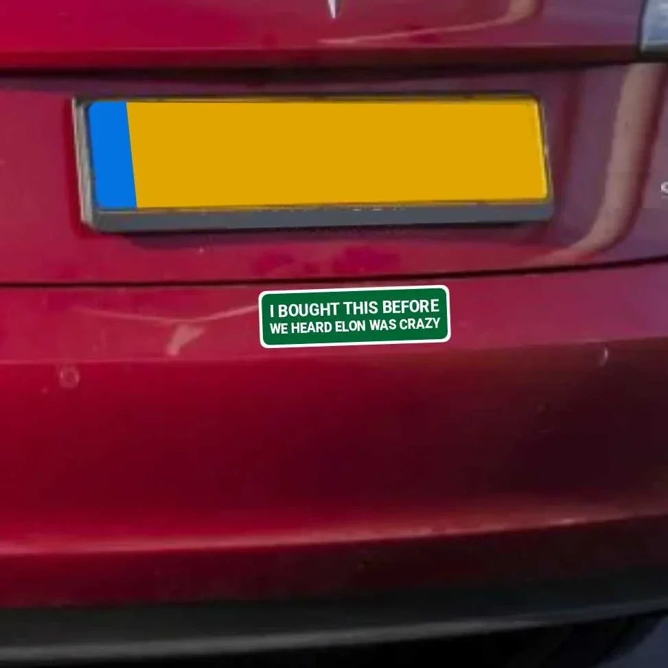 Onze 'Ik heb deze gekocht voor ik wist dat Elon gek was'-bumpersticker is de perfecte manier om je gevoelens te uiten voor elke rijder met een beetje humor.