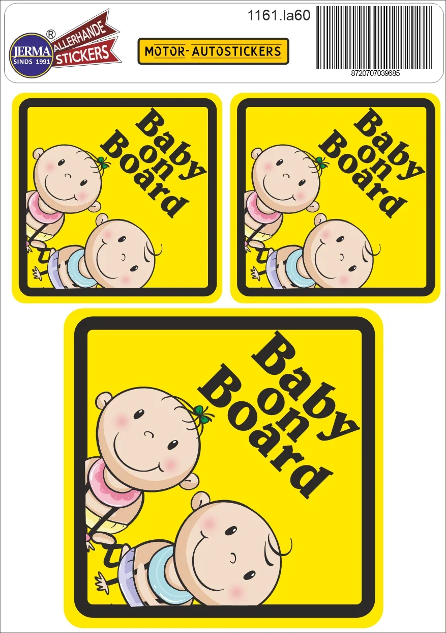 Deze vrolijke auto raamstickers geven aan dat er een baby en kinderen op de achterbank zitten.