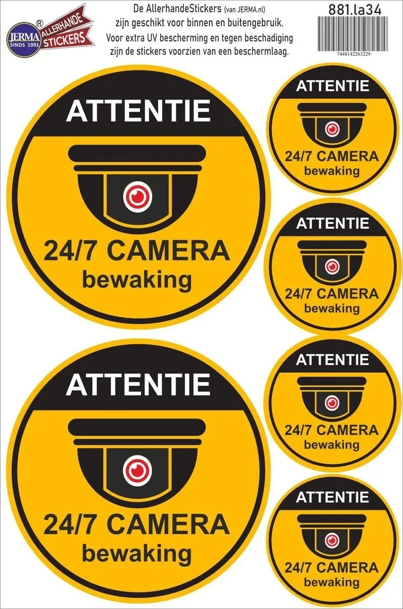 Camera bewaking sticker set van 6 stuks. (881.la34)