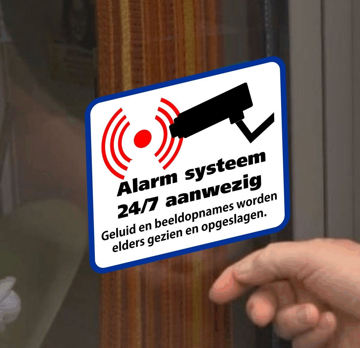 De stickers zijn bedoeld om potentiële inbrekers af te schrikken. De tekst "Alarmsysteem aanwezig met geluid en beeldopnames" maakt duidelijk dat er een alarmsysteem aanwezig is en dat er geluids- en beeldopnames gemaakt worden. Dit kan inbrekers ervan weerhouden om in te breken.