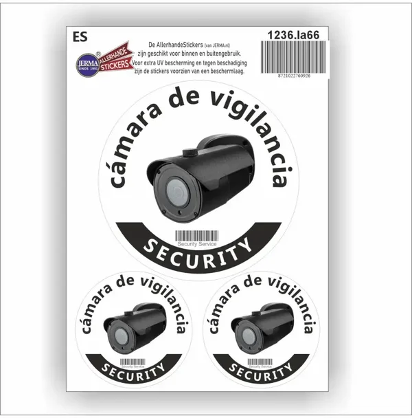 Camera toezicht stickers set van 3 met Spaanse tekst (1236.la66)