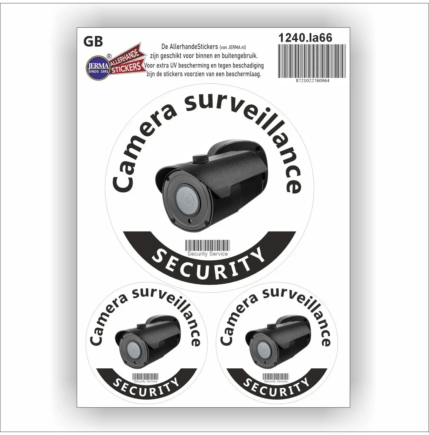 Camera toezicht stickers set van 3 met Engelse tekst (1240.la66)