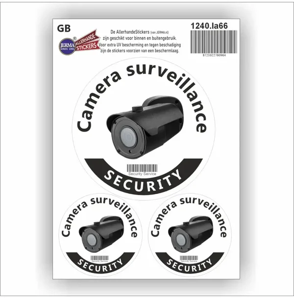 Bestel nu uw set camera bewakingsstickers en geniet van optimale beveiliging voor uw eigendom!