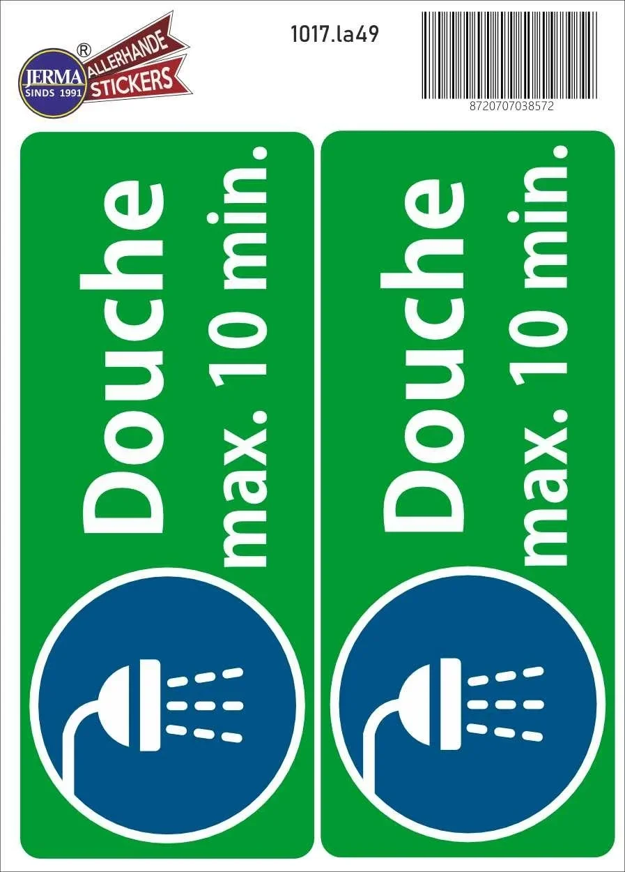 De Douche max. 10 min stickers zijn te koop bij JERMA.nl