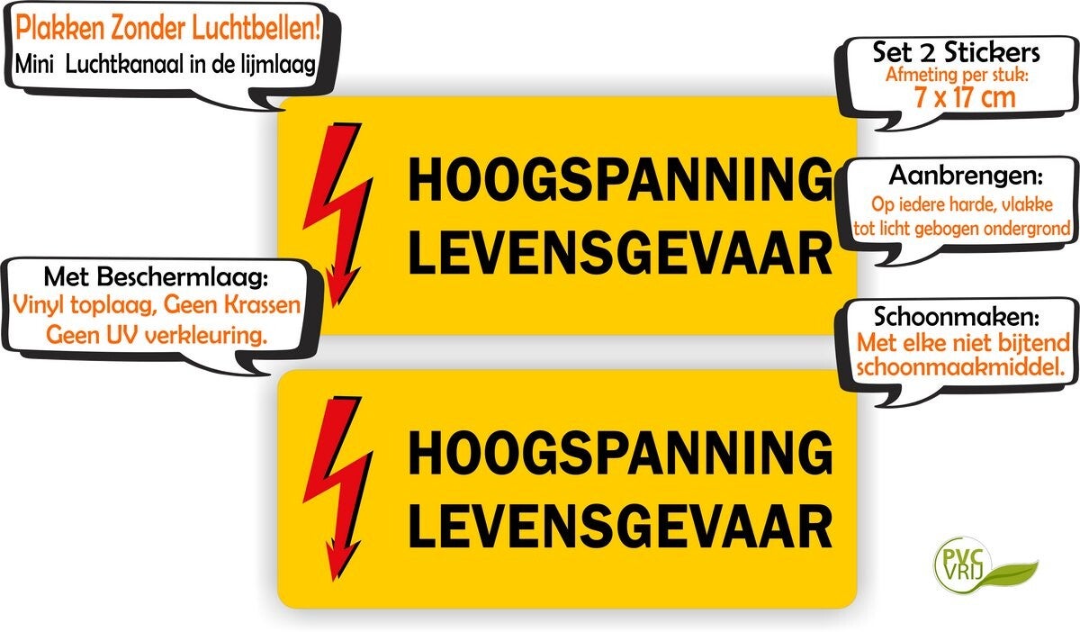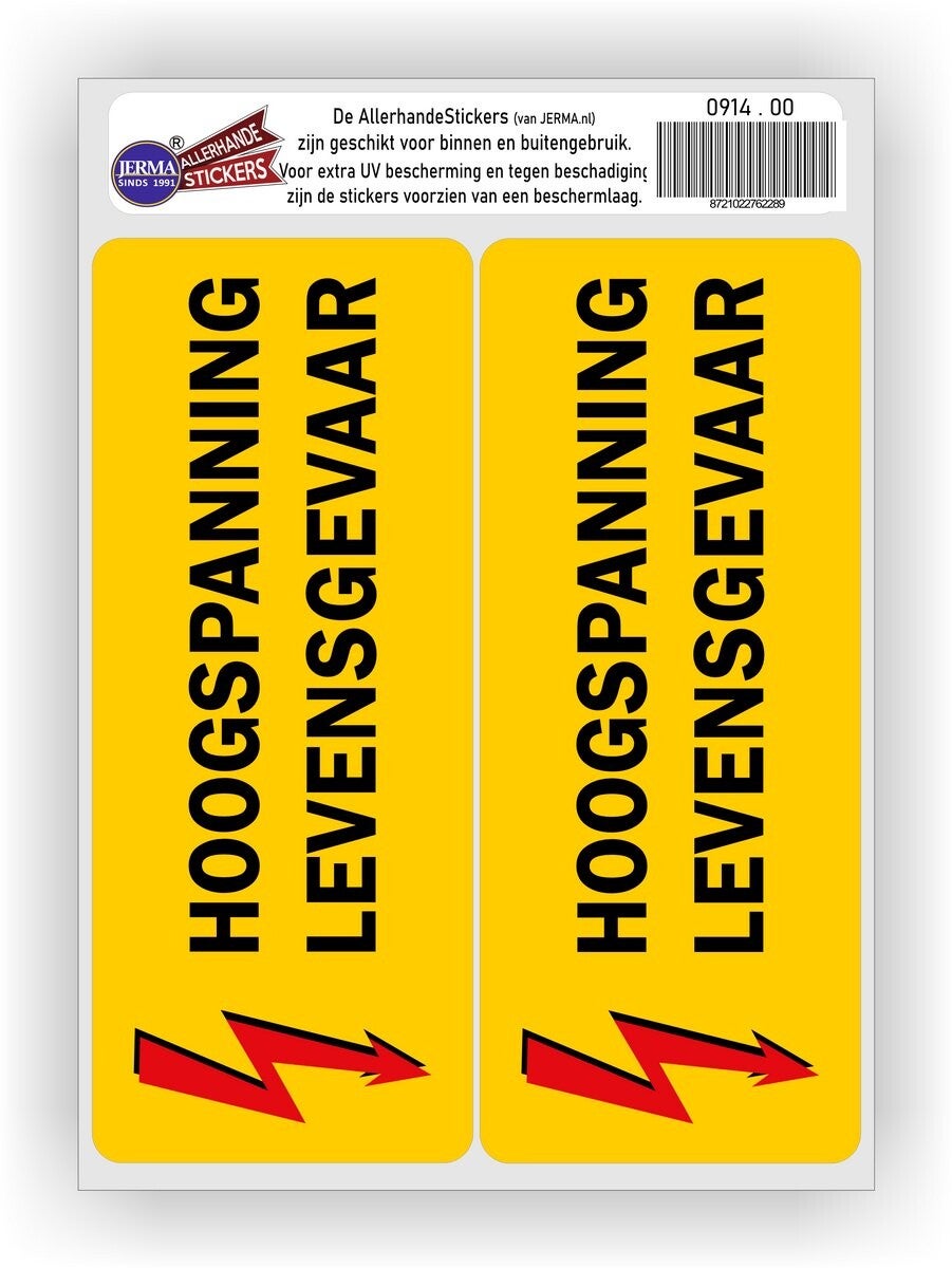 Hoogspanning levensgevaar waarschuwing sticker set 2 stuks.