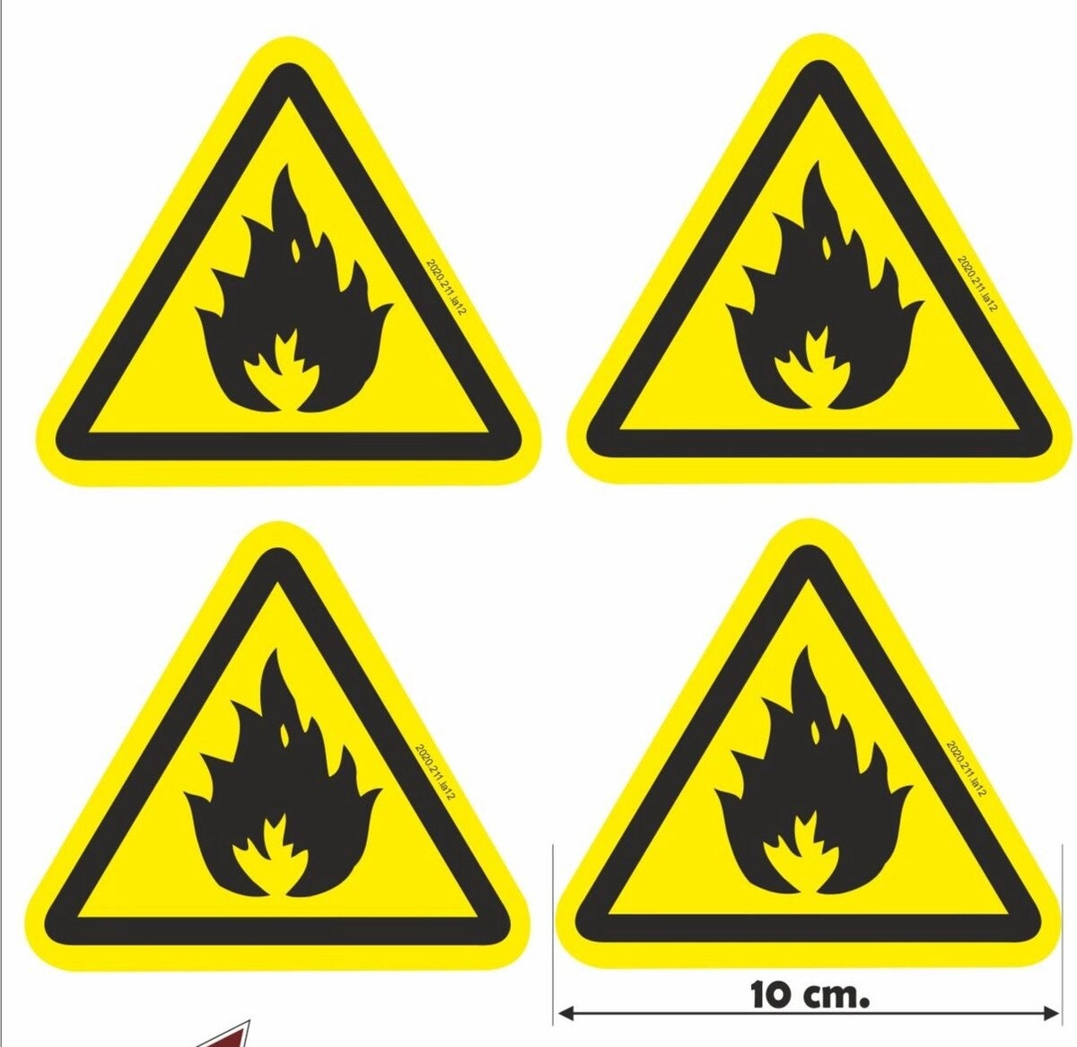 ISO-normstickers set 4 stuks: Waarschuwing voor Brandgevaarlijke Stoffen