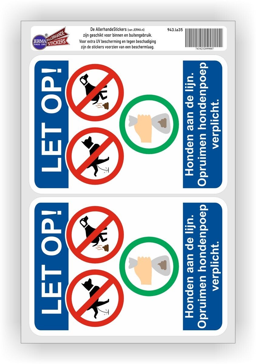- Formaat: De sticker is goed zichtbaar en valt direct op, waardoor hondenbezitters niet om de boodschap heen kunnen.