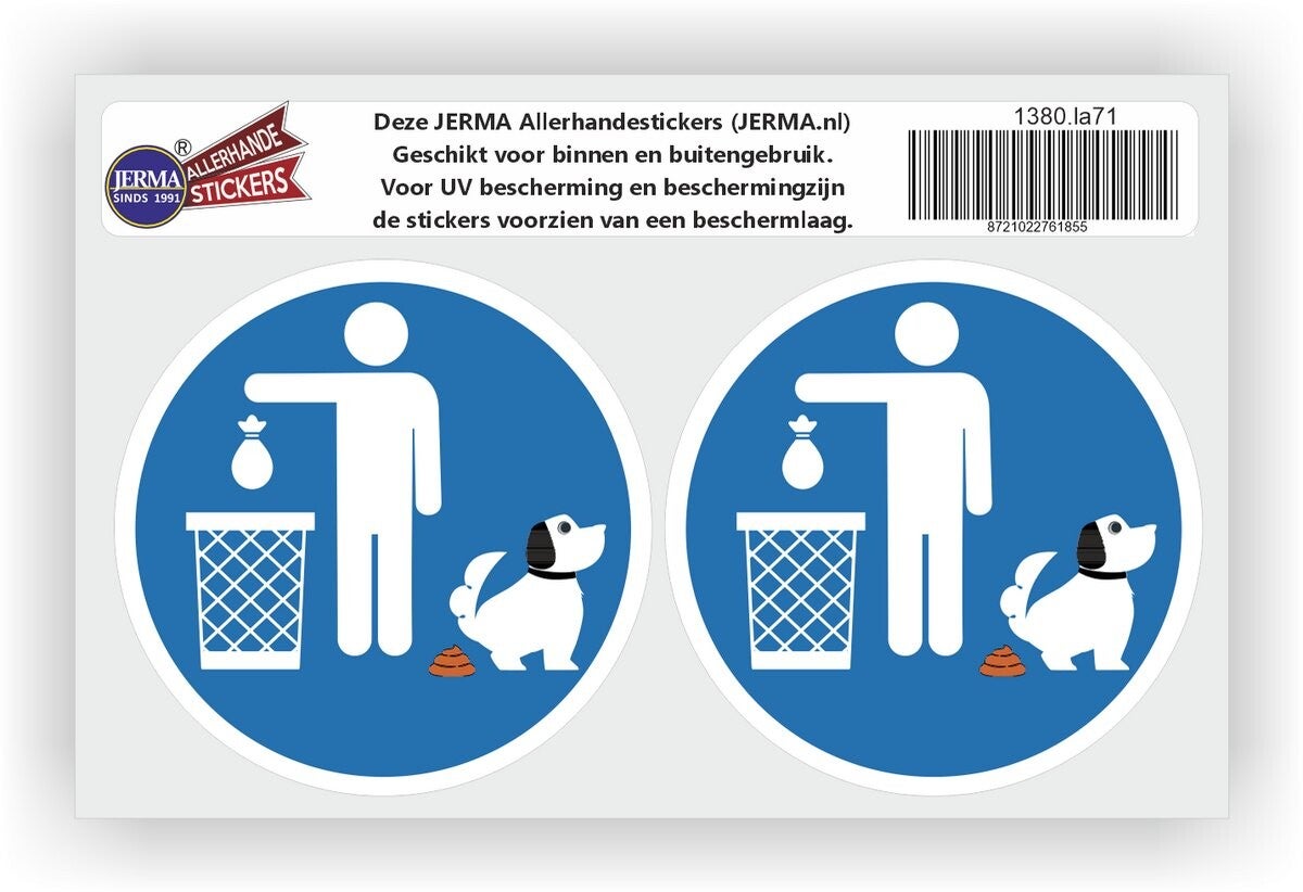 "Ruim de poep van je hond op" pictogramstickers set 2 stuks met een afmeting van: Ø 10 cm.