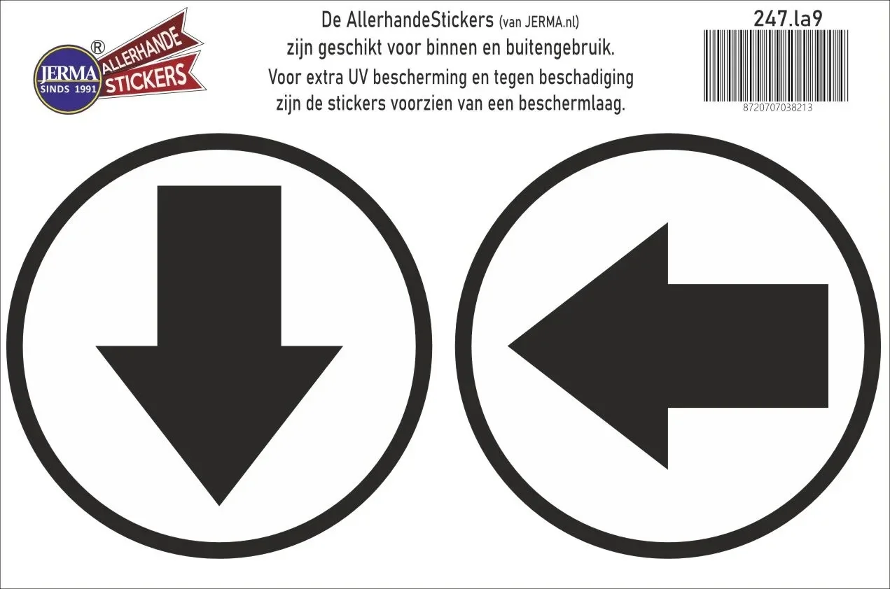 Pijl zwart, wit, richtingaanwijzer stickers 2 st. Ø10 cm (247.la9)