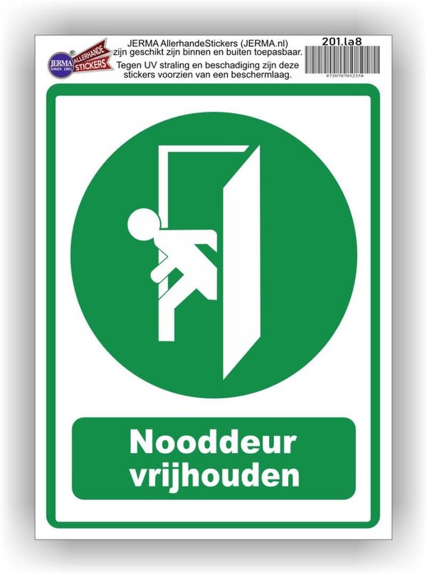 Nooduitgang vrijhouden pictogram sticker.