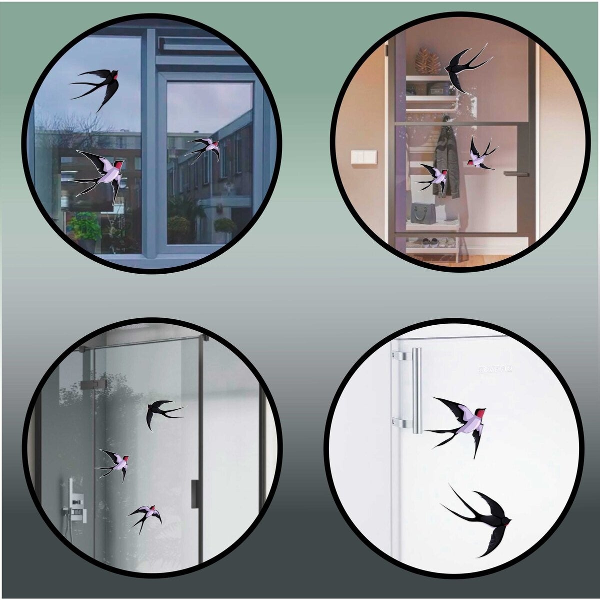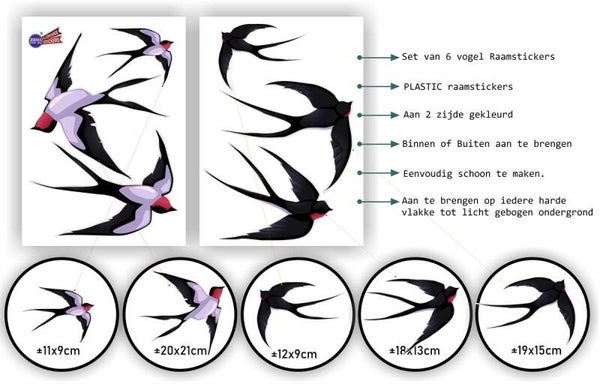 Maak uw ramen veilig en mooi met onze Vogelbescherming Raamstickers Set – 6 Zwaluwen.