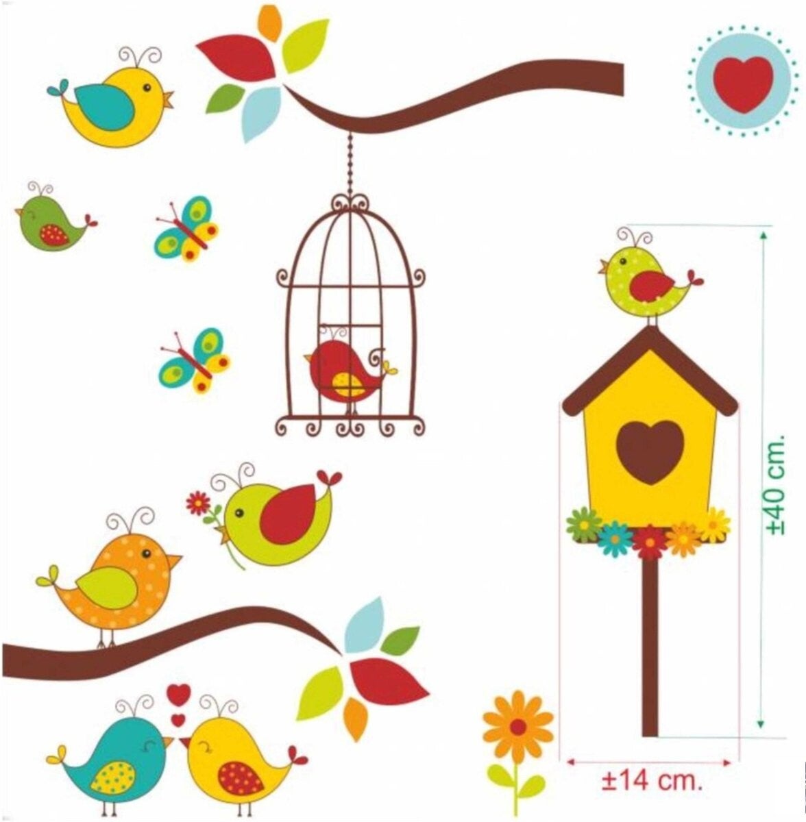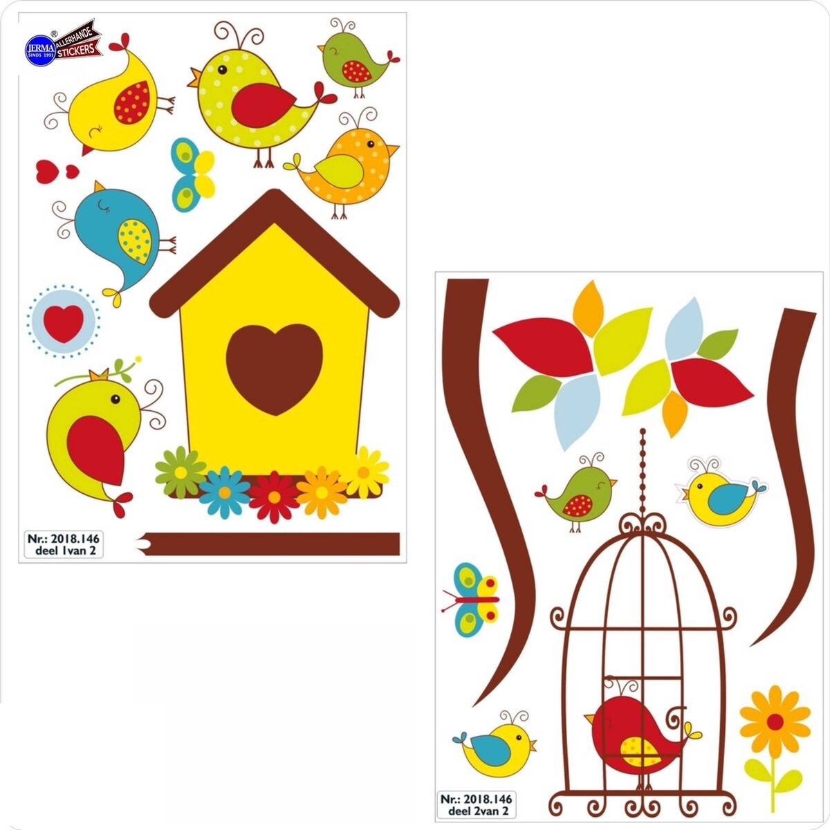 Vogels op tak en in vogelkooi raamstickers met nestkastje – decoratief én vogelbeschermend