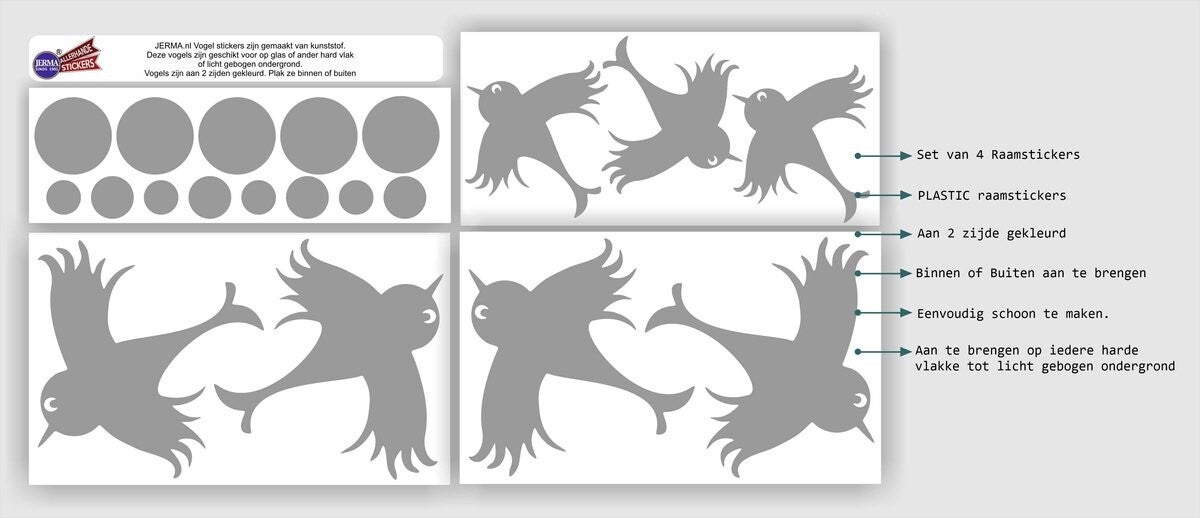 - De stickers zijn een milieuvriendelijke manier om uw vogels te beschermen.