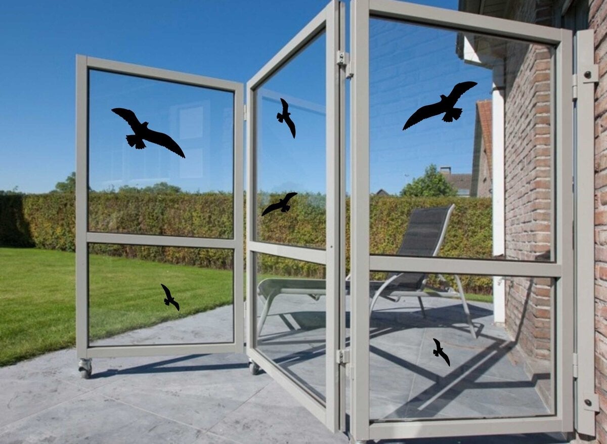 Vogelbescherming-stickers set van 6 zwarte raamstickers: Bescherm uw vogels tegen botsingen.