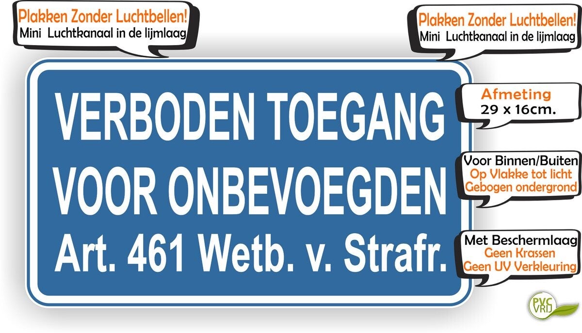 De sticker is maar liefst 29 x 16 cm groot, waardoor hij direct opvalt – ook vanaf een afstand. De heldere boodschap voorkomt misverstanden en houdt ongewenste bezoekers op afstand.