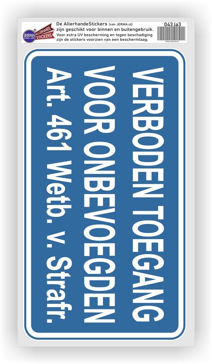 Verboden toegang sticker (zoals blauwe bordje) 043.03