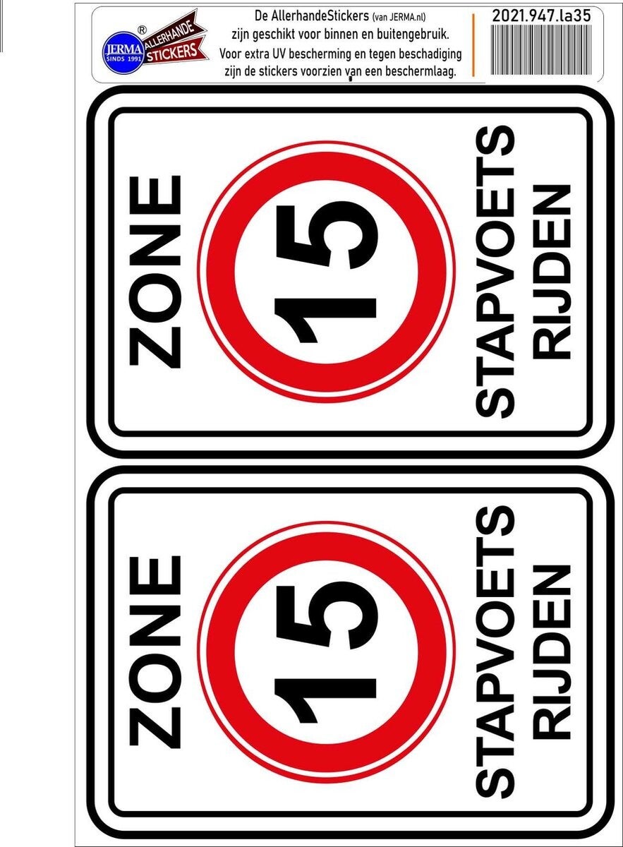 Stapvoets rijden verkeersbord stickers 15 km zone 2 st. (947.35)