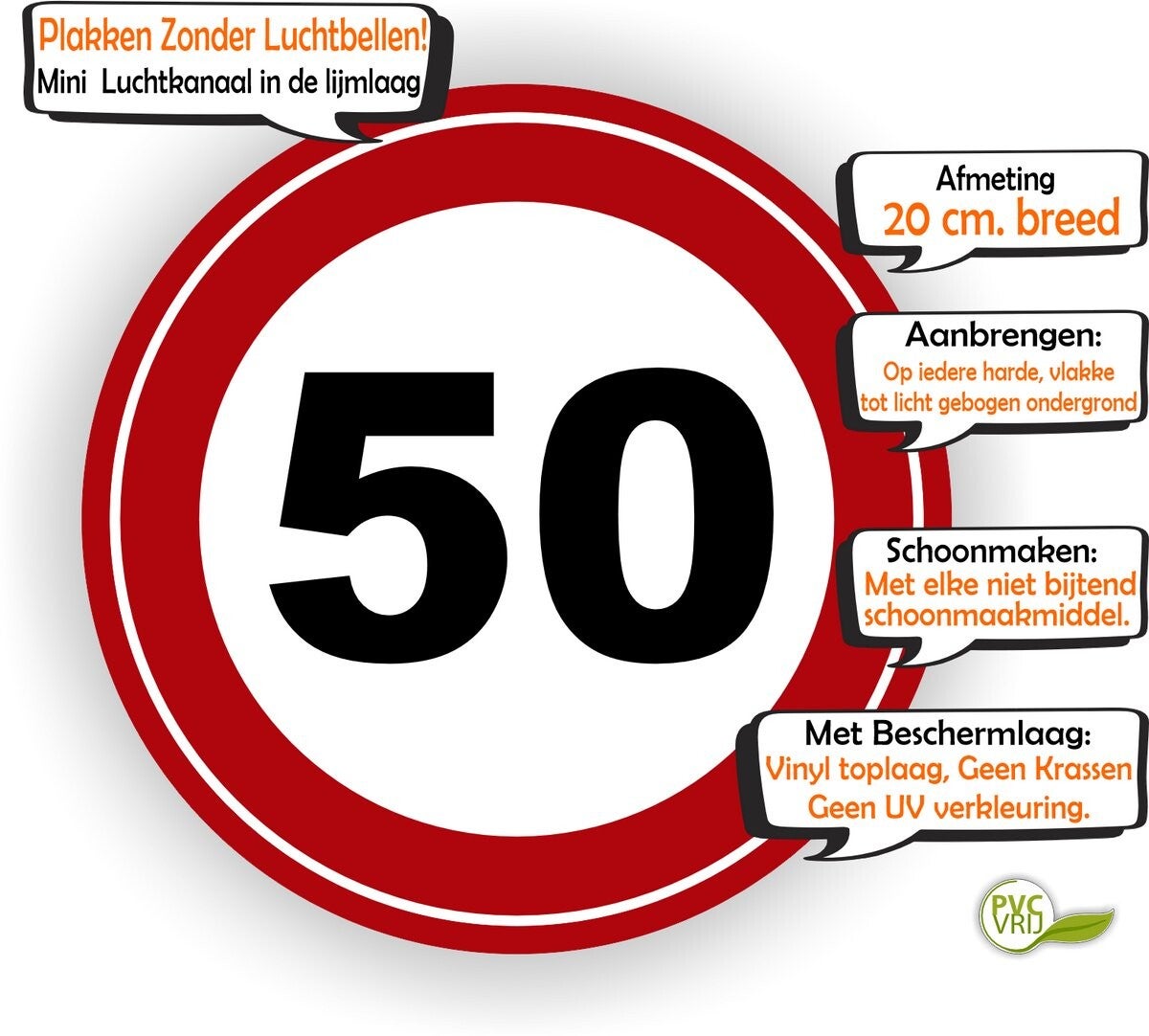 Met deze 50 km maximumsnelheid sticker maak je in één oogopslag duidelijk wat de geldende maximumsnelheid is. De ronde verkeersbord - sticker met een diameter van 20 cm is ideaal voor gebruik op verkeersborden, signalisatie, informatie- en veiligheidsborden.