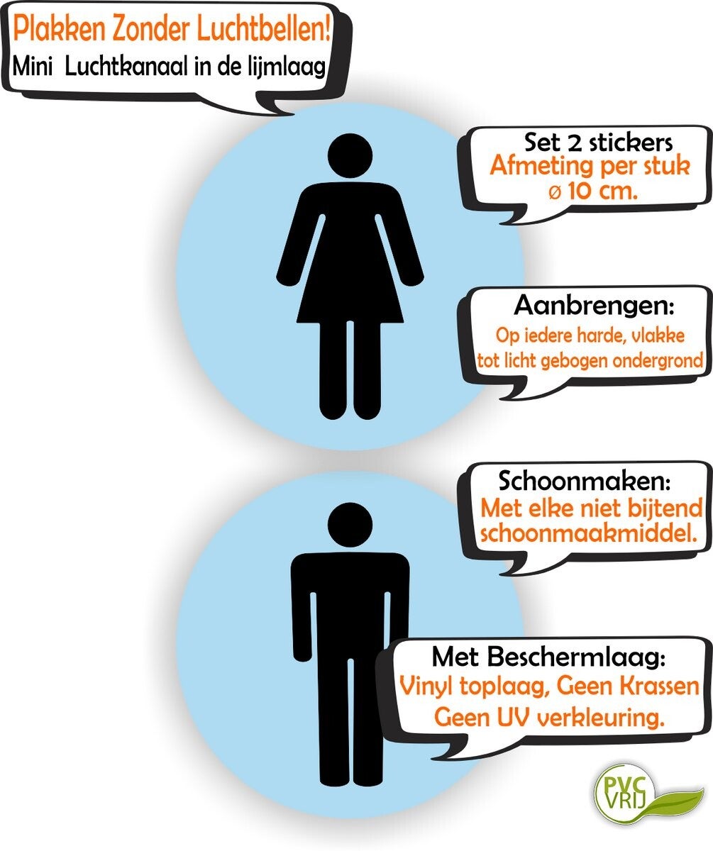 Pictogrammen: De stickers bevatten herkenbare pictogrammen van een man en een vrouw, waardoor ze voor iedereen duidelijk te begrijpen zijn.