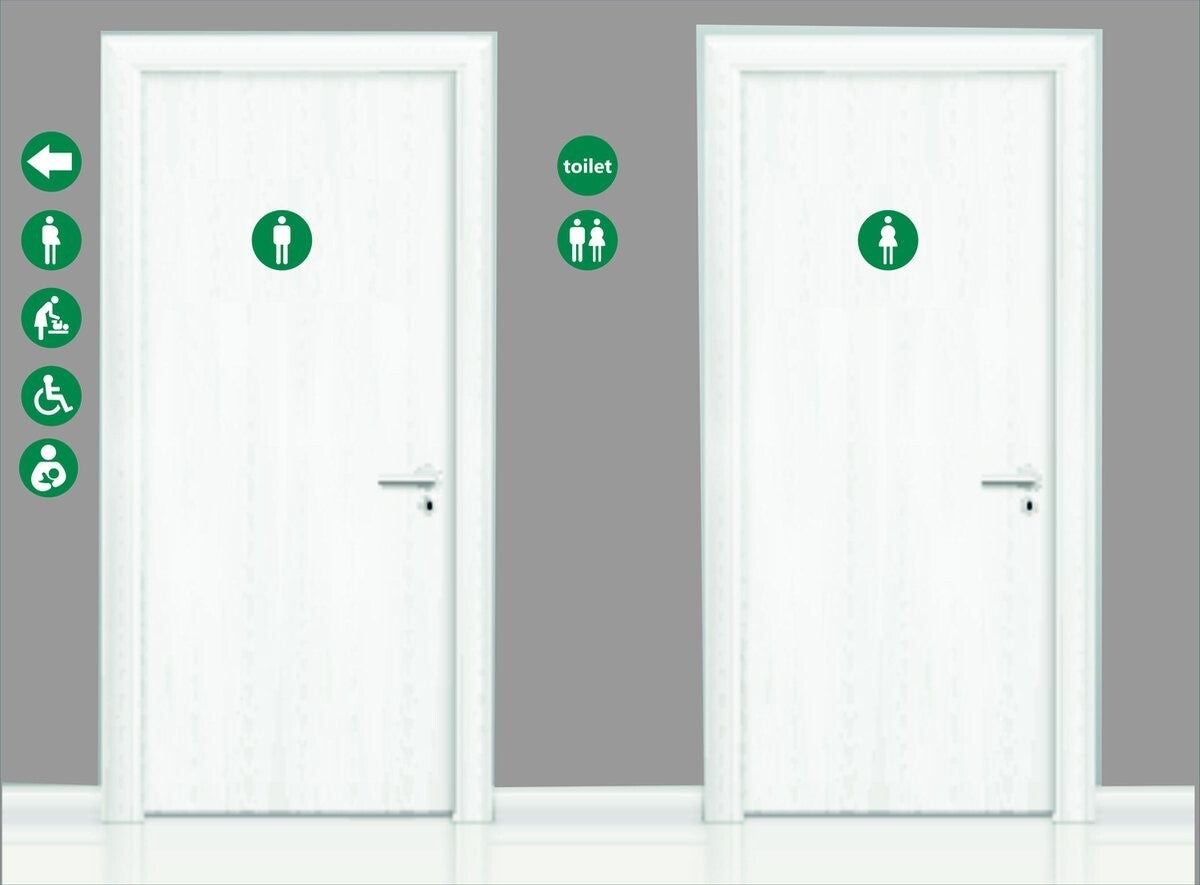 Maak jouw toiletruimte overzichtelijk en herkenbaar met deze Dames toilet pictogram stickers. Deze set van 2 stickers is ideaal voor gebruik op toiletdeuren in kantoren, horecagelegenheden, openbare gebouwen of privéruimtes. De groene kleur valt op en zorgt voor een frisse, duidelijke uitstraling.