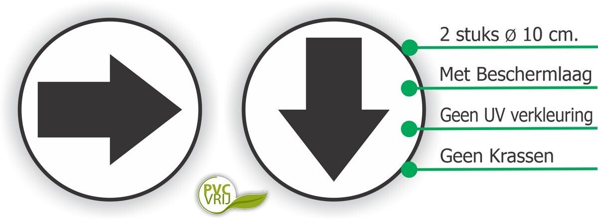 Pijl Verwijzing Sticker Set – 2 Stuks – Zwart/Wit – Ø10 cm – Routeaanduiding voor Binnen & Buiten