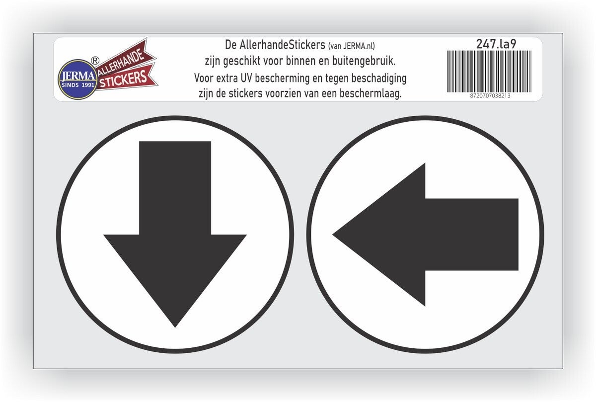 Zoek je een duidelijke en stijlvolle manier om bezoekers de weg te wijzen? Met deze pijl verwijzing sticker set (2 stuks, zwart/wit) geef je eenvoudig en effectief een richting aan – ideaal voor bijvoorbeeld het toilet, een uitgang of een specifieke ruimte.