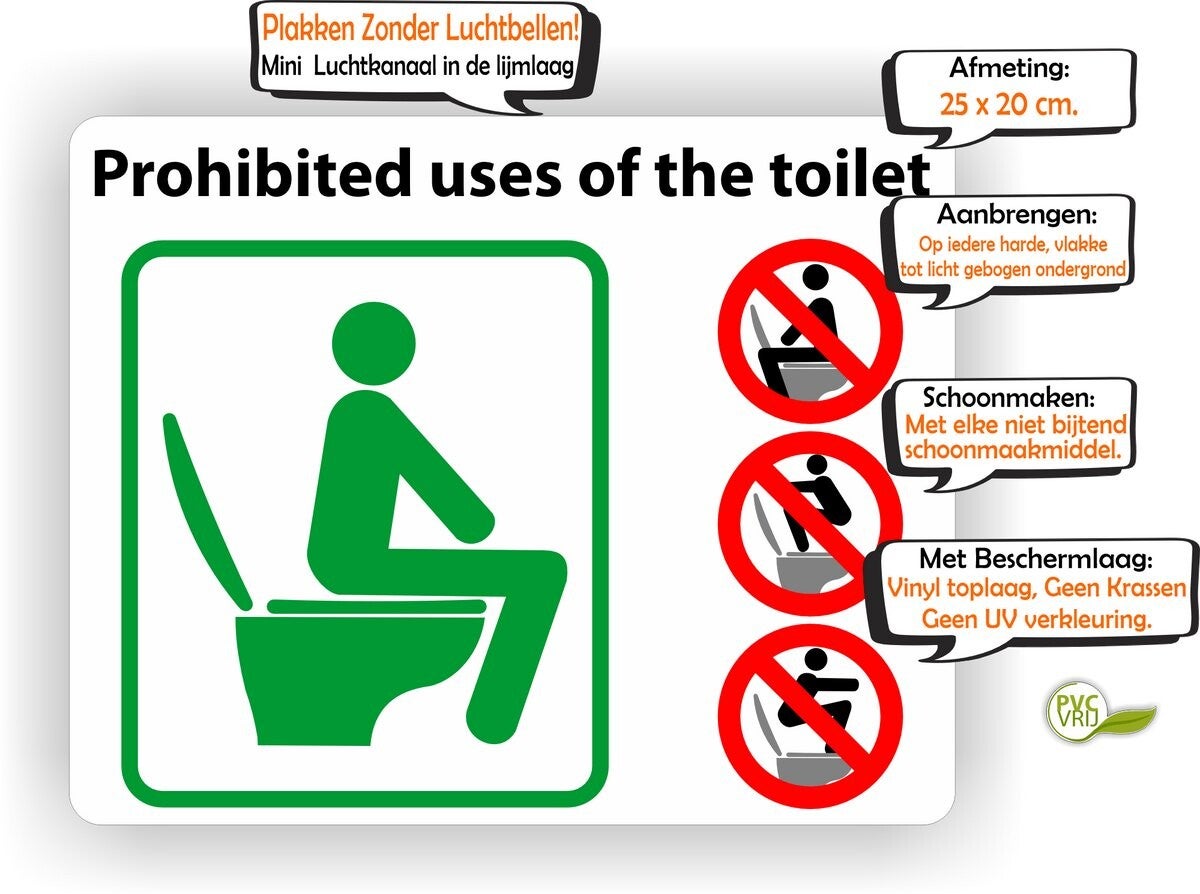 Toiletgebruiksticker – Verboden gebruik van het toilet (25 x 20 cm, Vinyl, Zelfklevend)