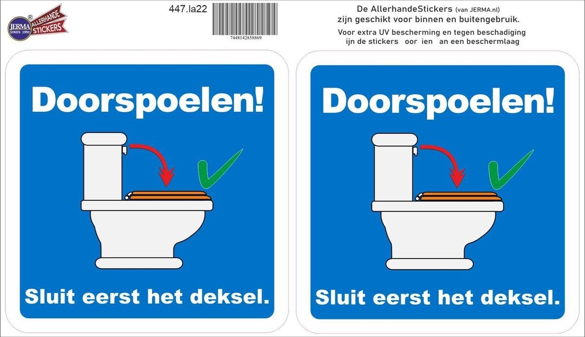 WC sticker, wc deksel sluiten, toilet sticker hygiëne, wc doorspoelen deksel dicht, sanitaire sticker, hygiëne toilet, vinyl wc sticker, toilet waarschuwing sticker, wc hygiëne maatregel