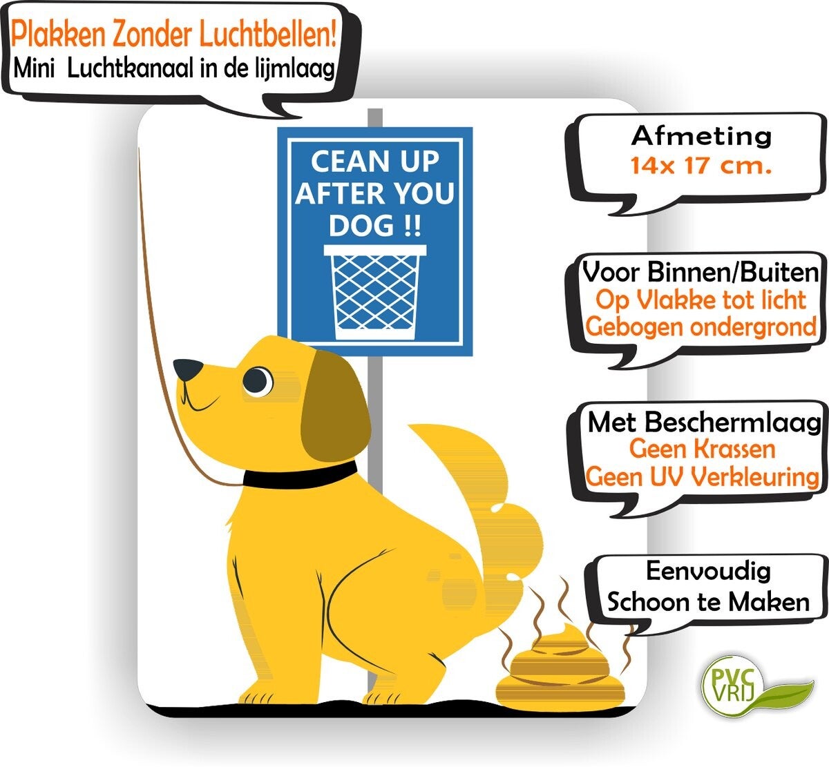 Onze stickers zijn de perfecte oplossing om hondenbezitters vriendelijk te herinneren aan hun verantwoordelijkheid.