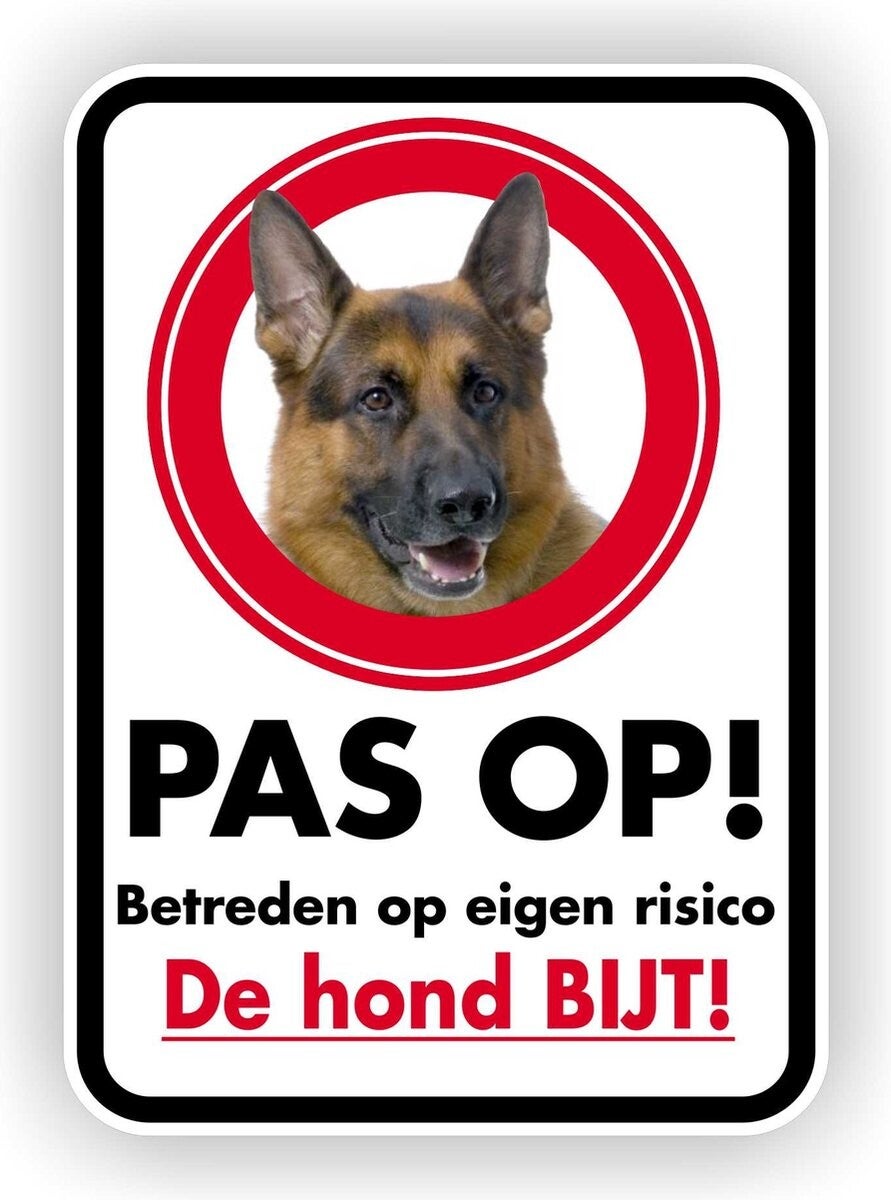 Bescherm je terrein én waarschuw bezoekers duidelijk met deze grote, opvallende “Pas op voor de hond” sticker.