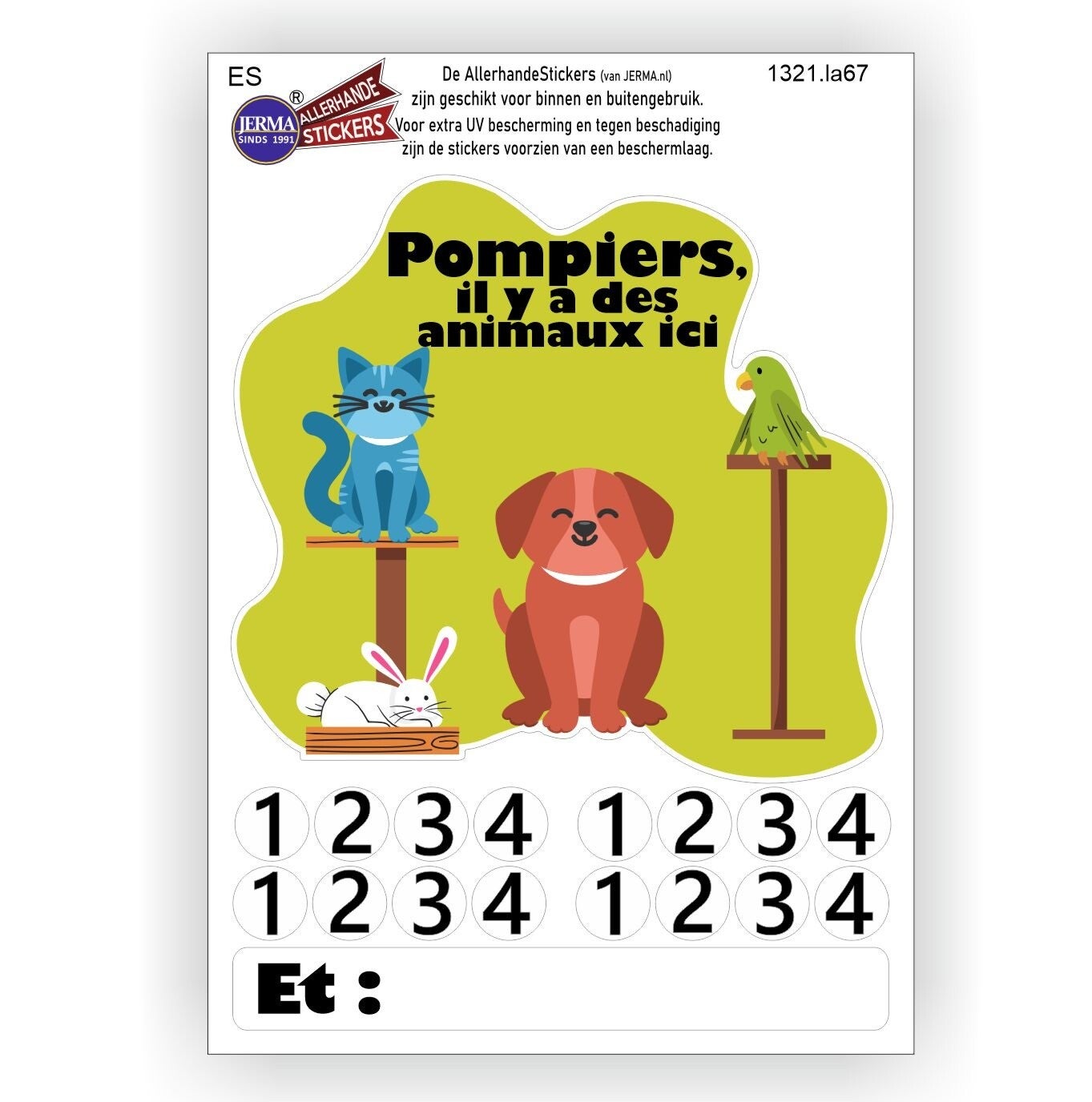 Deze sticker is onmisbaar voor iedereen met huisdieren. In geval van brand is het voor de hulpdiensten vaak onduidelijk of er huisdieren in huis aanwezig zijn. Met deze sticker weten ze dat meteen!