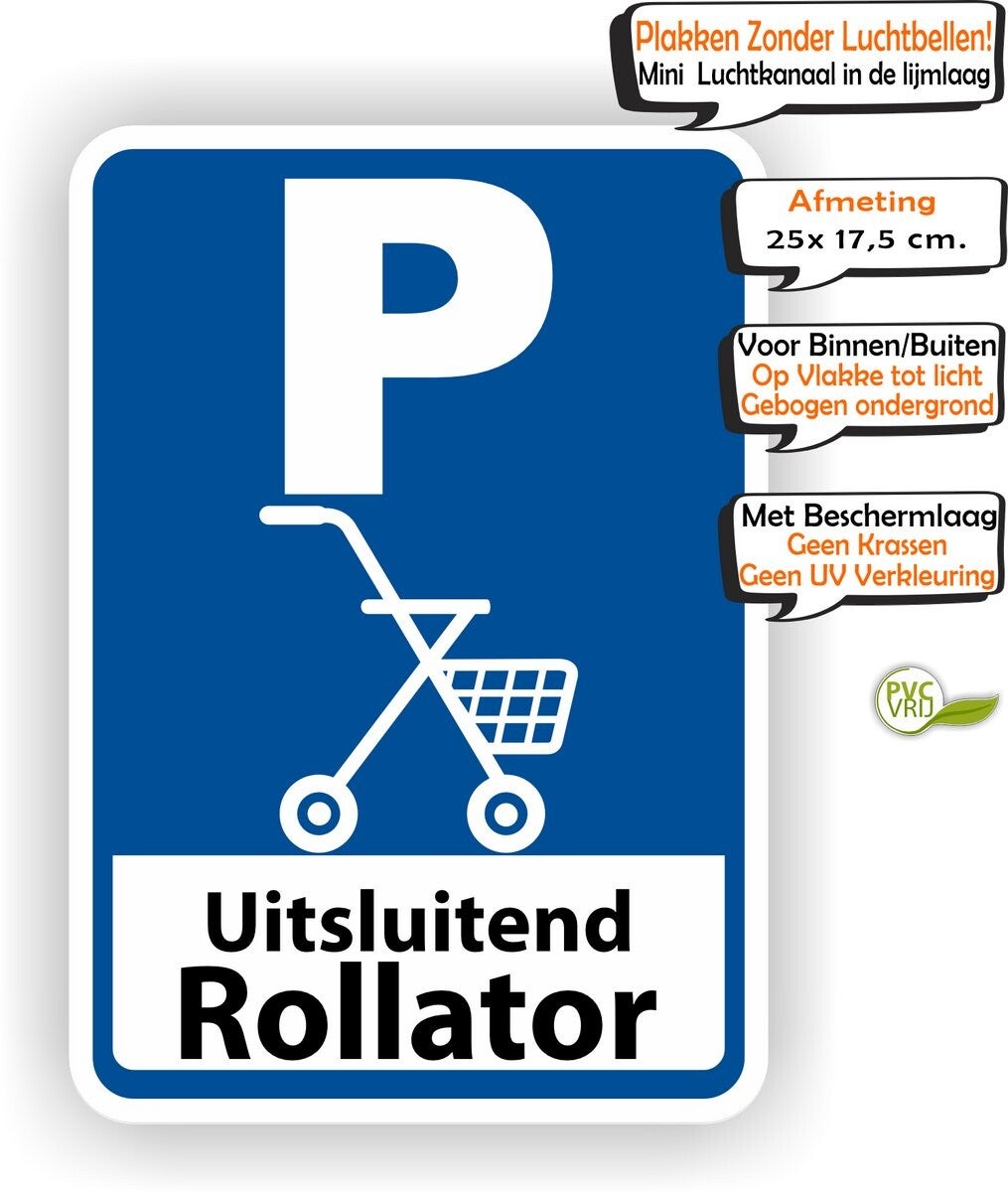 Rollators hier plaatsen – Hou de doorgang vrij - Grote waarschuwingssticker 17,5 x 25 cm - Geschikt voor binnen- en buitengebruik.