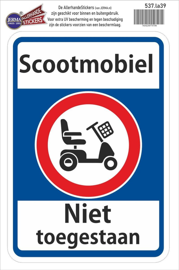 Scootmobiel niet toegestaan, grote sticker.