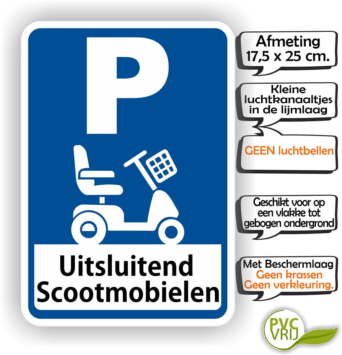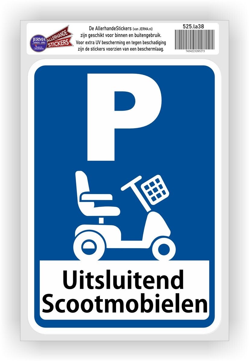 Scootmobiel-parkeerplaats-verkeersbordsticker – 17,5×25 cm - Binnen & buiten.