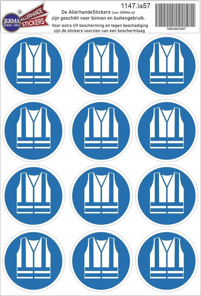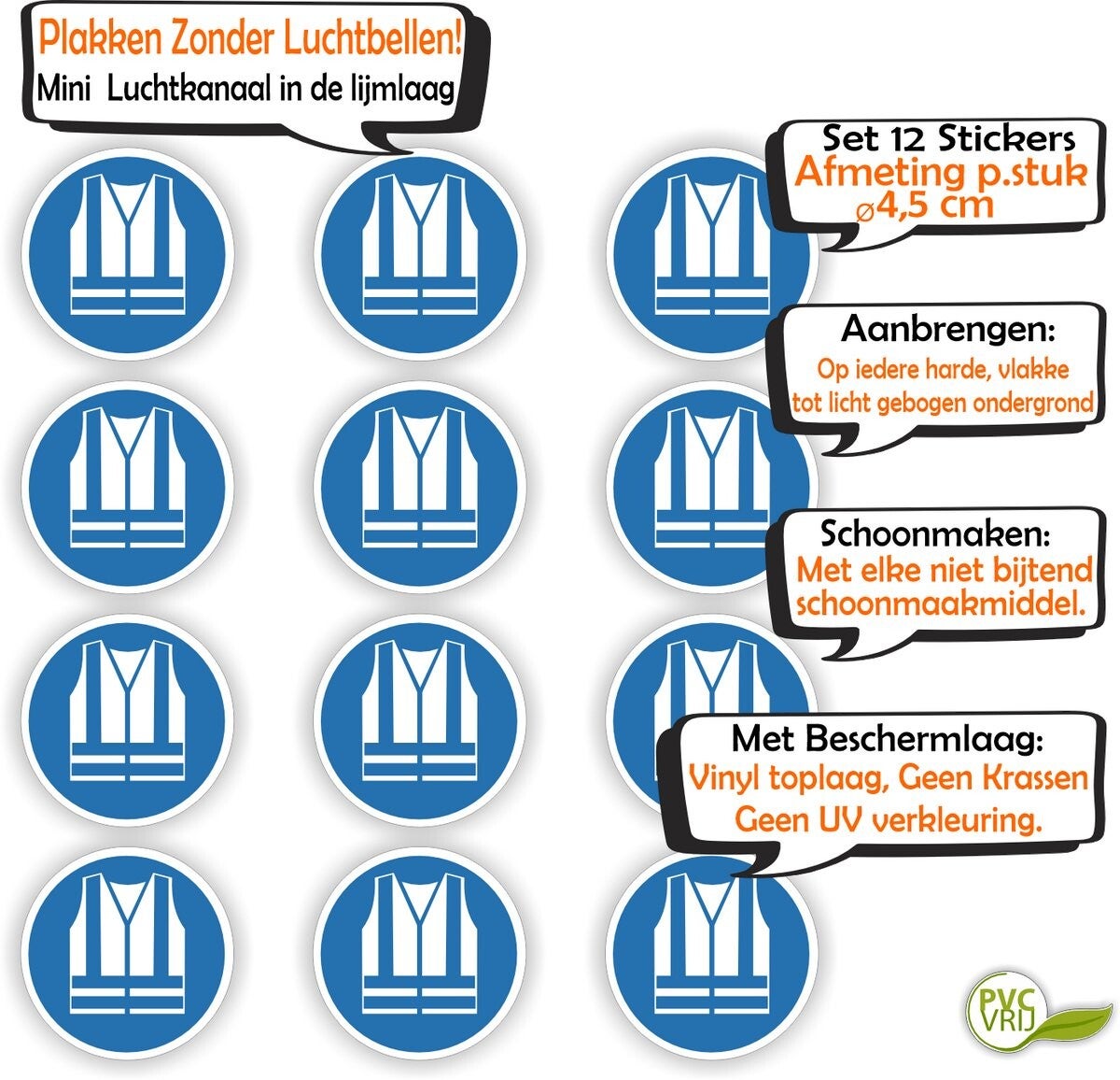 Veiligheidshesjes dragen verplicht pictogram stickers set van 12 stuks.