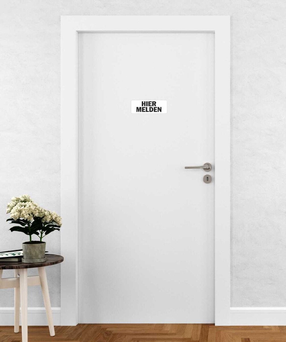Met deze sticker set van 2 stuks "HIER MELDEN" geef je duidelijk aan waar men zich moet aanmelden.