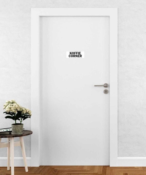 Met deze sticker set van 2 stuks "KOFFIECORNER" geef je duidelijk aan waar je moet zijn voor een kopje koffie.