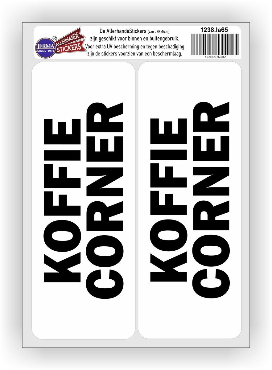 Tekst: KOFFIECORNER set van 2 stickers